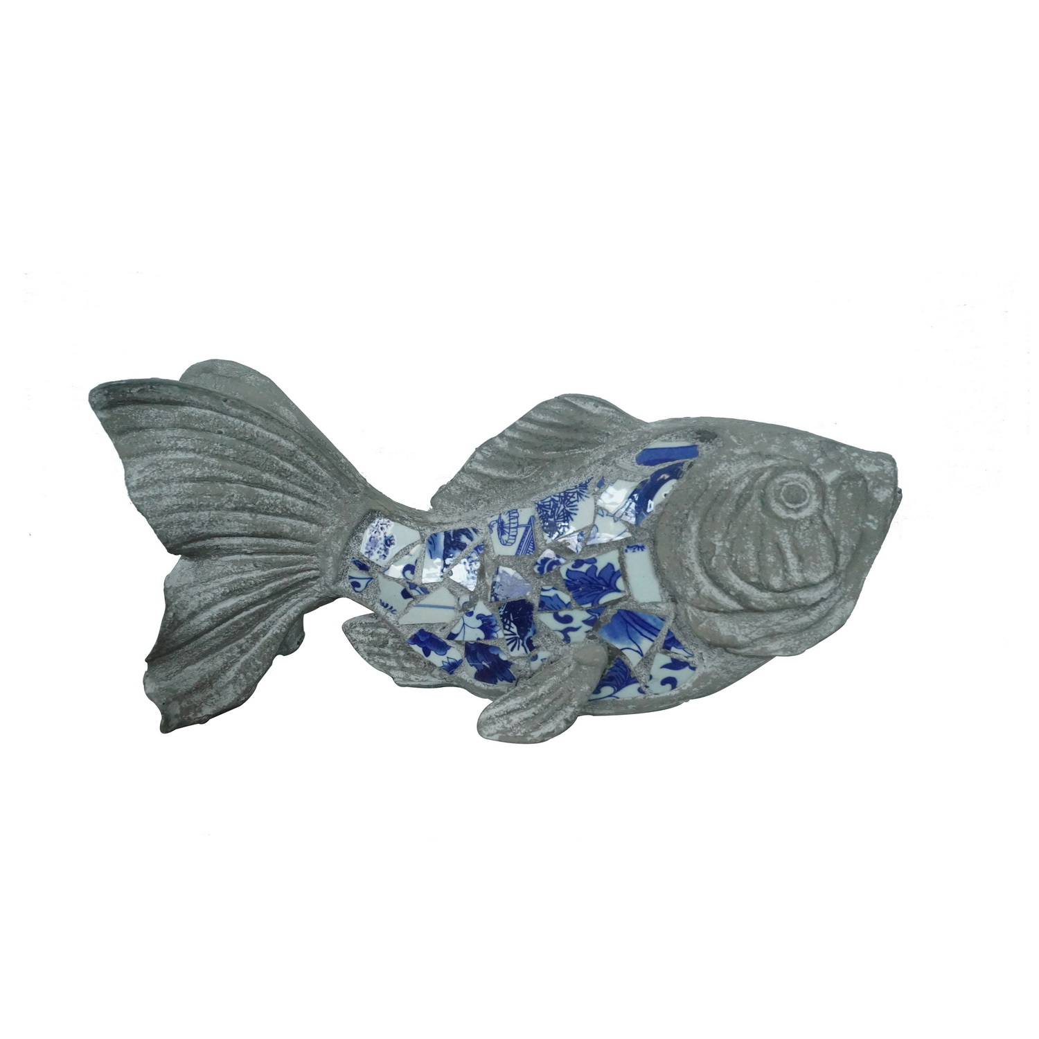 POLYSTONE BLUE/WHITE MOSAIC KOI 19"